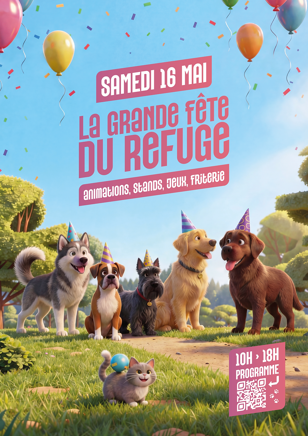 🥳☀️ À quelques jours de l’été, venez vivre la nouvelle édition de la Grande Fête du Refuge de l'agglomération Béthune Bruay ! Nos chiens et chats à l'adoption vous attendent entourés de nombreux stands et d'animations qui vont ponctuer cette journée qui s'annonce encore une fois exceptionnelle.
